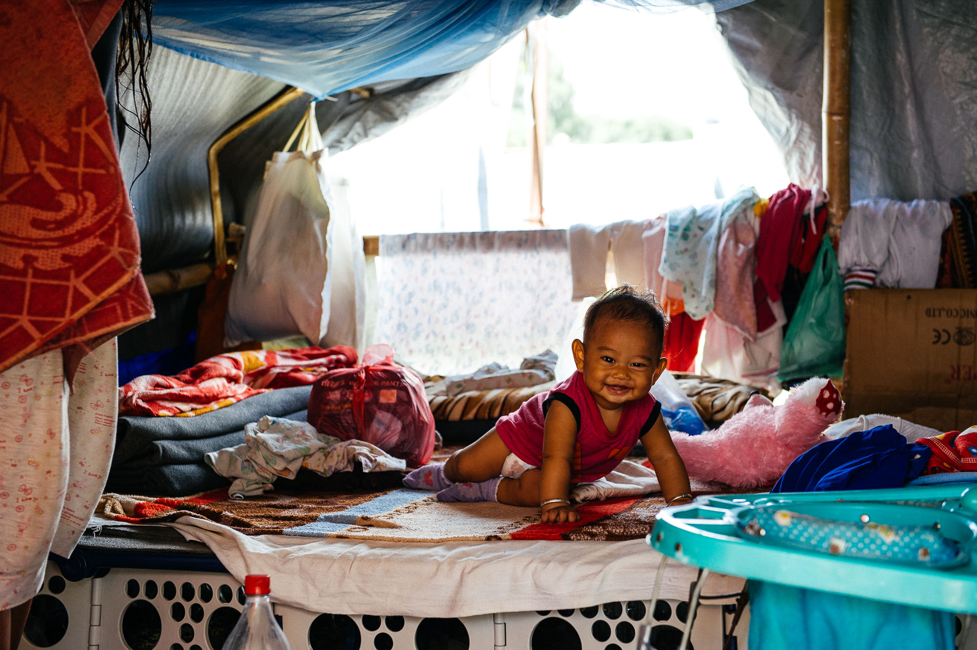 Nikes is 9 years old. He is from Nepal. On April 25, 2015, at 11:56 a.m., he and his family lost everything, even their house. That day Nepal trembled as it never had before: an earthquake with a magnitude of 7.8 on the Richter scale and a shockwave that lasted 44 seconds, killed over 8,700 people. The trauma was re-lived once more for a lapse of 10 seconds at 7:05 a.m. on May 12, 2015, this time reaching 7.3. Since then, Nikes’ family has lived along with 977 other families in this refugee camp in the heart of Kathmandu, the capital city of Nepal, but they do not know for how much longer. Nikes’ parents cannot afford to build a new house, and the government is unable to help its citizens. Sometimes up to eight people have to pile into the small tents. But in spite of such difficult life conditions, Nikes keeps smiling as he tells me: “I am still alive!”